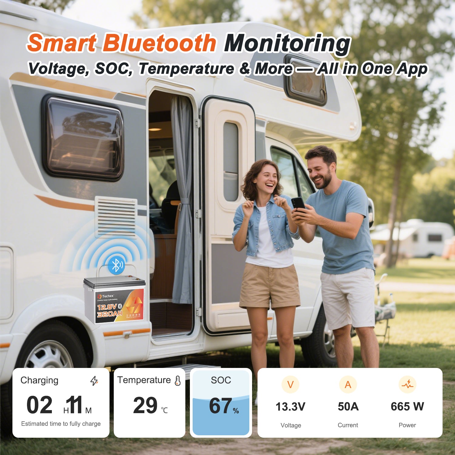 【Smart Bluetooth Monitoring & Easy Setup】 Built-in Bluetooth allows you to monitor battery status in real time via your smartphone — no need to remove the battery or install extra monitors. Easy to set up with no complex wiring